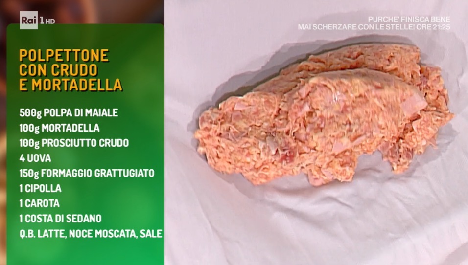 Prima manche ricca di gusto e di doppi sensi… con Alessandra Spisni e Daniele Persegani. I due cuochi emiliani, oggi, sono chiamati a proporre la loro versione di un classico della cucina nostrana, da Nord a Sud, il polpettone. Ecco il polpettone con crudo e mortadella di Alessandra Spisni.