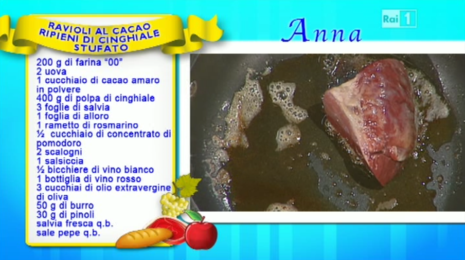 La ricetta dei ravioli al cacao ripieni di cinghiale stufato di Anna Moroni. del 18 novembre 2013 – La prova del cuoco