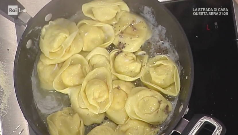 Condimento: sciogliamo in padella un tocco di burro. Mettiamo a rosolare il tartufo grattugiato (o semplicemente della salvia). Uniamo i tortelloni e li mantechiamo con abbondante formaggio grattugiato.