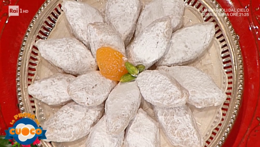 Spolveriamo un piano con lo zucchero a velo, abbondante, e formiamo sopra dei salsicciotti di impasto. Tagliamo a fette spesse circa 3 cm, oblique. Le appiattiamo leggermente con le mani e le ovalizziamo. Dobbiamo ottenere dei rombi. Passiamo in abbondante zucchero a velo e posizioniamo su una teglia. Inforniamo a 150°, forno statico, per 15-18 minuti: devono crearsi delle crepe in superficie. Spolveriamo con abbondante zucchero a velo.
