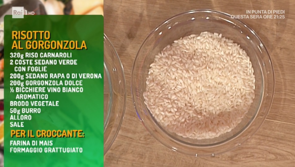Sergio Barzetti torna al suo primo amore, il risotto, preparandone uno golosissimo e super classico, poichè tipico della regione che ha fatto del risotto il suo piatto principe, ma reinterpretandolo. Ecco il risotto al gorgonzola.
