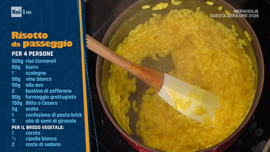 Consiglio: per il riso al salto, quando abbiamo raffreddato il risotto in frigorifero, formiamo dei dischi e li congeliamo. Quando vogliamo preparare il riso al salto, prendiamo un disco ancora congelato e lo saltiamo in padella con un po’ di burro.