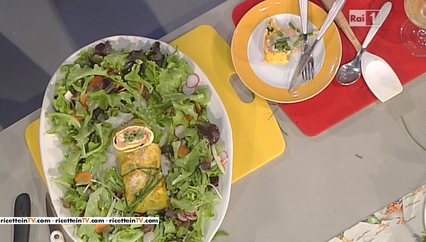rotolo di frittata con salmone di Luisanna MesseriE’ il turno di un’altra cuoca ruspante, la toscanaccia Luisanna Messeri, che propone un piatto squisitamente estivo, oltre che semplice nella preparazione. Ecco la ricetta del rotolo di frittata con salmone.