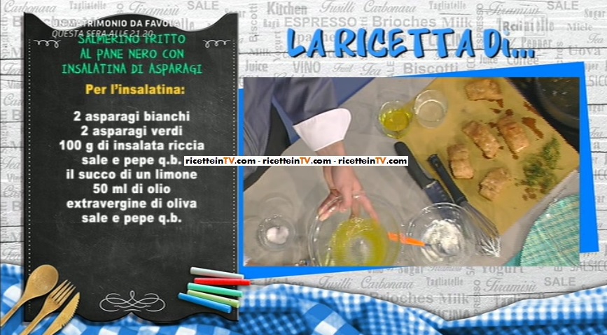 - Per l’insalatina: 2 asparagi bianchi, 2 asparagi verdi, 100 g insalata riccia, sale e pepe, succo di 1 limone, 50 ml olio evo, sale e pepe
