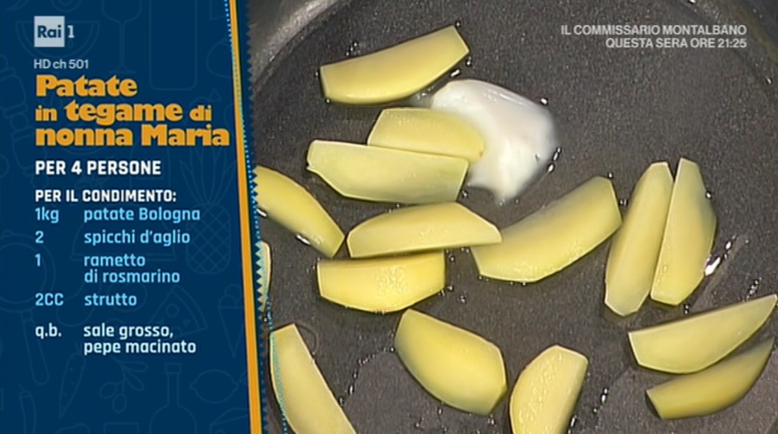 - per le patate: 1 g di patate Bologna, 2 spicchi di aglio, 1 rametto di rosmarino, 2 cucchiai di strutto