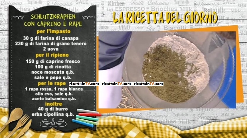 c4Dai provini in diretta, alla cucina in diretta, con Marcus Holzer, che dopo aver mostrato, con orgoglio, le foto delle sue montagne innevate, propone un ‘caldo’ primo piatto. Ecco la ricetta degli schlutzkrapfen con caprino e rape, ovvero delle mezzelune di pasta ripiena.