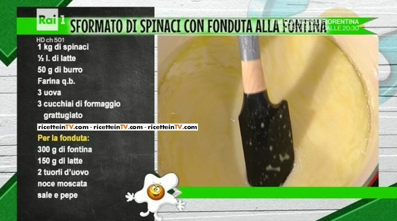 - 1 Kg spinaci, 1/2 l latte, 50 g burro, 70 g farina, 3 uova, 3 cucchiai di formaggio grattugiato