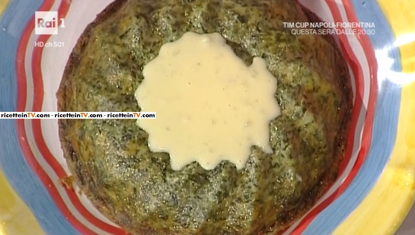 Serviamo lo sformato con la fonduta, che mettiamo nel buco centrale.