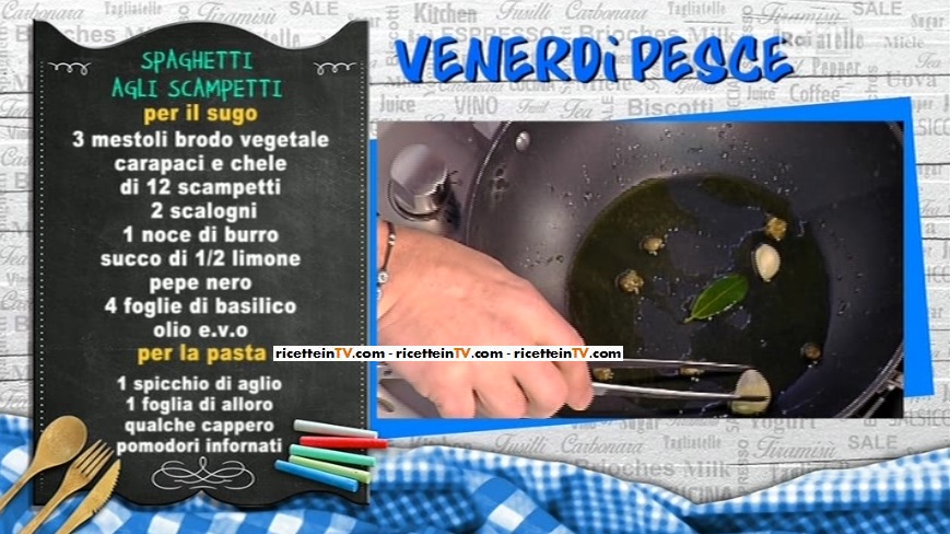 Dopo il dolce, il primo (menu a ritroso). Venerdì pesce, con Gianfranco Pascucci, che prepara un primo classico, ma alla sua maniera. Ecco la ricetta degli spaghetti agli scampetti.