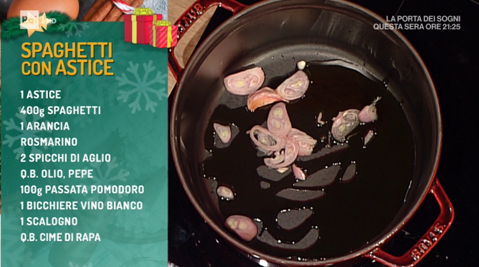 Gianfranco Pascucci, nella prima Prova Individuale, prepara il primo delle feste, perfetto per la vigilia di Natale, ma anche per Capodanno, un primo piatto sontuoso e raffinato: gli spaghetti all’astice.