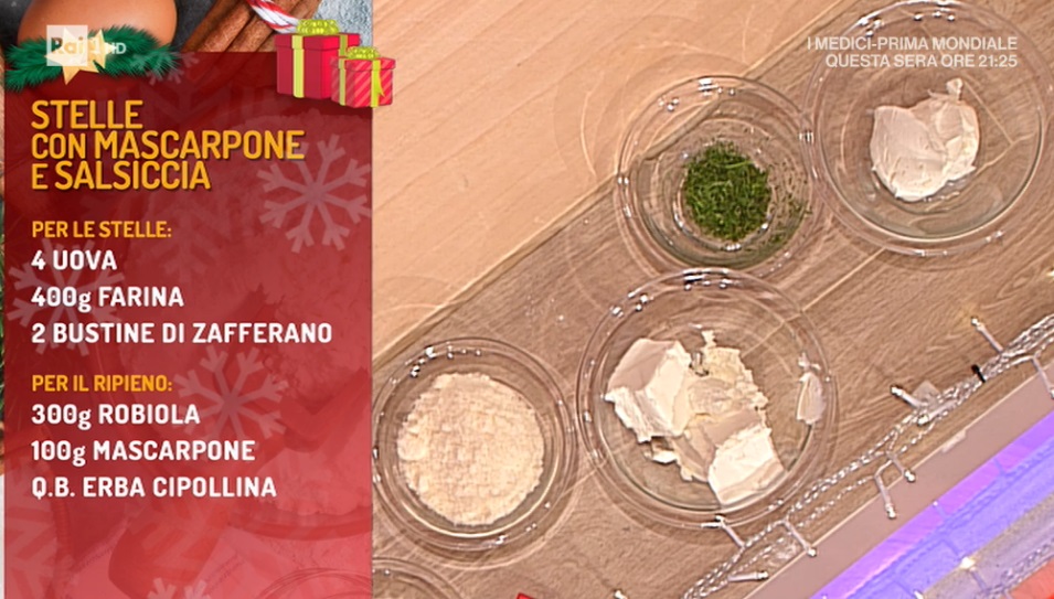 - Ripieno: 300 g robiola, 100 g mascarpone, erba cipollina