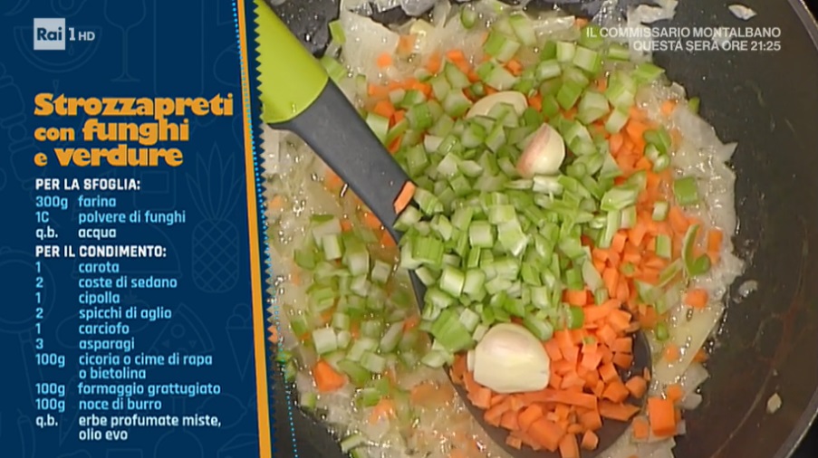 - Condimento: 1 carota, 2 coste di sedano, 1 cipolla, 2 spicchi d’aglio, 1 carciofo, 3 asparagi, 100 g cicoria o cime di rapa o bietoline, 100 g formaggio grattugiato, 100 g burro, erbe profumate miste, olio