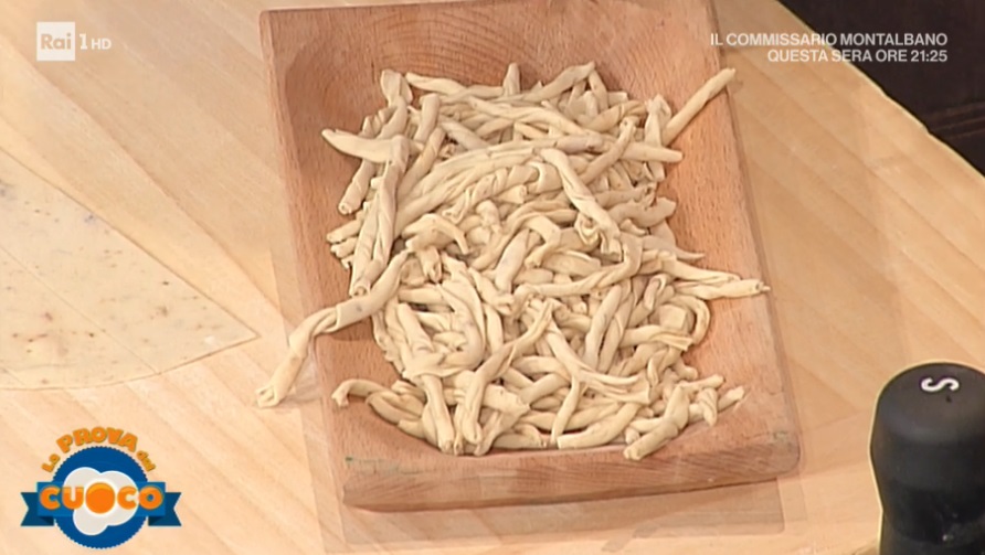 Tiriamo la sfoglia, non troppo sottile, quindi ritagliamo delle strisce, che facciamo roteare tra le mani, in modo da ottenere delle eliche lunghe circa 5-6 cm. Cuociamo in acqua bollente e salata. Dopo pochi minuti, scoliamo e li saltiamo con il sugo di verdure e del formaggio grattugiato.