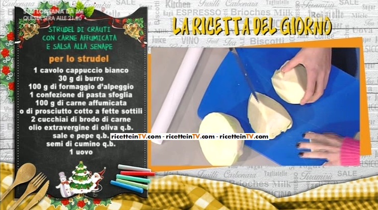 Lo scampanio natalizio della sigla introduce Antonella, ben contenta di mantenere le decorazioni di Natale fino a domani. Ad aprire questa puntata, però, è la ricetta di Marcus Holzer, che prepara una ricetta squisitamente altoatesina, lo strudel di crauti con carne affumicata e salsa alla senape.