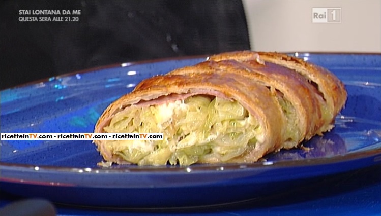 Cominciamo tagliando il cavolo a quadrettoni. Trasferiamo in una pentola capiente, con un filo d’olio ed una noce di burro. Uniamo un po’ di brodo, copriamo e lasciamo stufare. Tagliamo il formaggio di montagna a cubetti (potete sostituirlo con il formaggio a vostra disposizione: fontina, casera ecc). Prendiamo il nostro affettato affumicato (potete usare anche del semplice prosciutto di Praga) e lo disponiamo su un rettangolo di pasta sfoglia, stesa su un foglio di carta forno. Condiamo i crauti stufati con sale, pepe e cumino; lasciamo raffreddare ed uniamo il formaggio a cubetti. Trasferiamo i crauti ed il formaggio sulle fette di prosciutto, formando una sorta di salsicciotto al centro del rettangolo di sfoglia; compattiamolo per bene usando le mani. Richiudiamo i lati della sfoglia verso l’interno, sigillando per bene le estremità. Trasferiamo su una teglia da forno, foderata di carta, rivolgendo la parte della congiuntura verso la base, in modo che non si apra in cottura. A parte, sbattiamo un uovo e spennelliamo tutto lo strudel; pratichiamo dei fori con una forchetta e inforniamo per 30 minuti circa a 200° (forno preriscaldato).
