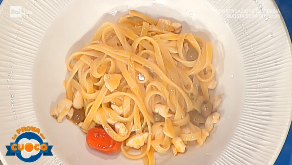 In una padella, scaldiamo un filo d’olio con le olive denocciolate, i capperi ed uno o due pomodorini. Tagliamo la gallinella a cubetti piccoli e la mettiamo a cuocere in padella. Saliamo ed aggiungiamo del basilico fresco. Lasciamo rosolare pochi istanti. Scoliamo le tagliatelle e le saltiamo con il condimento, in padella. Aggiungiamo il sugo di gallinella ristretto e lasciamo insaporire qualche istante.