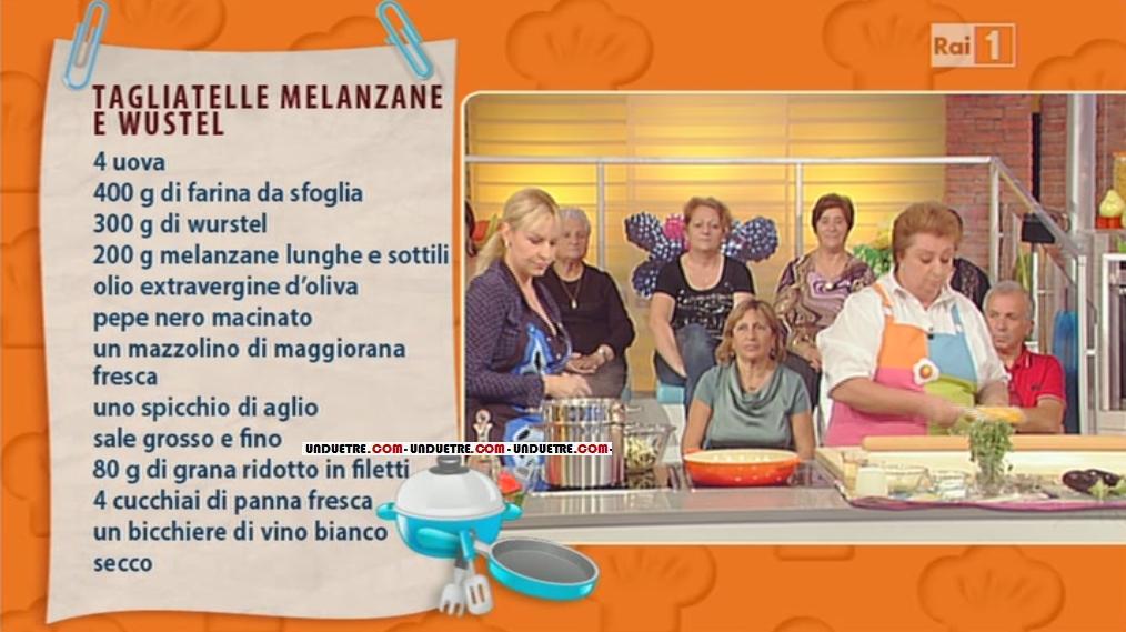 La ricetta delle tagliatelle con melanzane e wurstel di Alessandra Spisni – La prova del cuoco