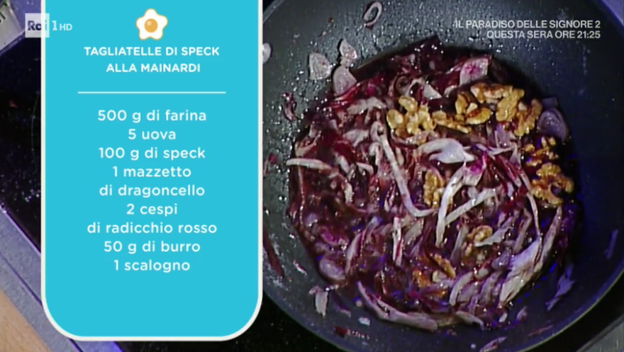 - 500 g farina, 5 uova, 100 g speck, 1 mazzetto di dragoncello, 2 cespi di radicchio rosso, 50 g burro, 1 scalogno