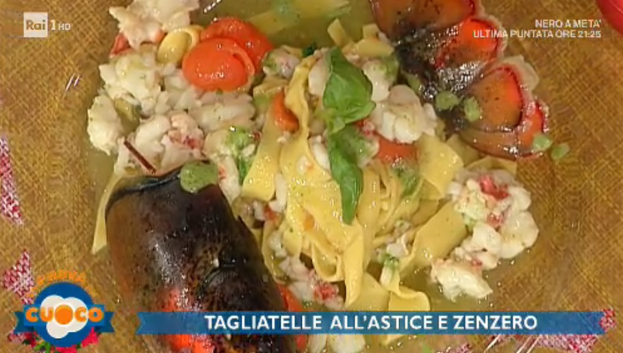 - 200 g pomodorini, 1 astice da 1 Kg, 1 limone, olio evo, sale, pepe, sedano, carota, cipolla, basilico, zenzero