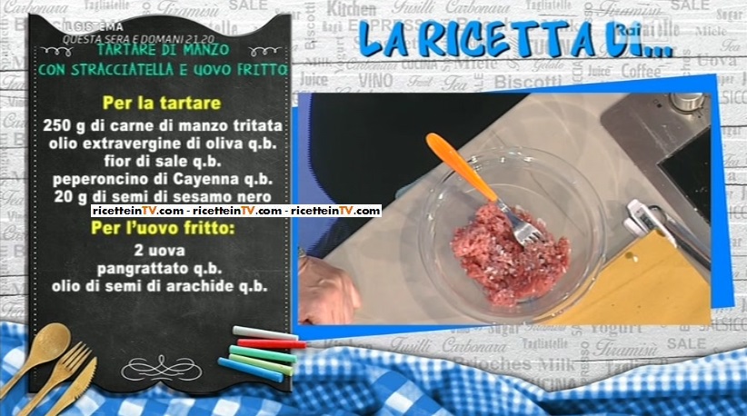 tartare2Dopo l’ennesimo match tra il superchef Gilberto Rossi e due cuochi amatoriali (vinto da due casalinghe dell’Argentario), voliamo in montagna (anche se, ormai, preferiremmo correre al mare!), da Marcus Holzer, per preparare una tartare di manzo con stracciatella e uovo fritto.