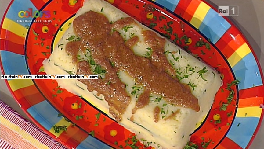 Lessiamo, peliamo e schiacciamo le patate. Le condiamo con sale e pepe e prezzemolo tritato finemente. Sbollentiamo anche i fagiolini e li tagliamo a tocchetti. Foderiamo uno stampo da plumcake con della pellicola. Formiamo un primo strato di patate; mettiamo i fagiolini a tocchetti e la cipolla di tropea tritata finemente; copriamo con altre patate, fagiolini e le uova sode in fila e copriamo con altre patate, fagiolini e cipolla; finiamo con le patate a coprire; schiacciamo per bene e chiudiamo con la pellicola; facciamo riposare in frigorifero per qualche ora. E’ pronto! Serviamo a fette e con una salsa ottenuta frullando le acciughe con olio evo quanto basta.