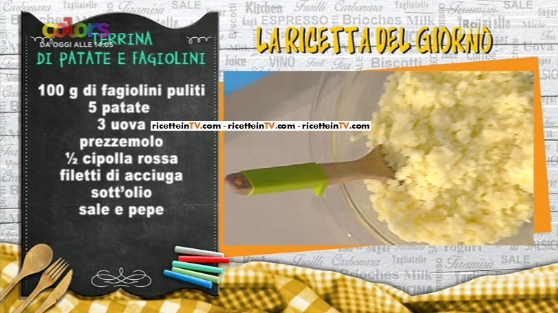- 100 g fagiolini puliti, 5 patate, 3 uova, prezzemolo, 1/2 cipolla rossa, filetti di acciuga sott’olio, sale e pepe