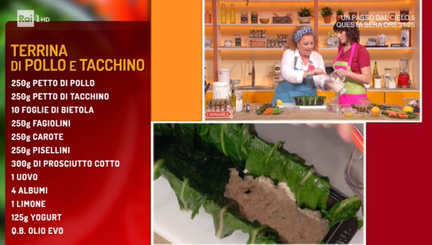 - 250 g petto di pollo, 250 g petto di tacchino, 10 foglie di bietola, 250 g fagiolini, 250 g carote, 250 g pisellini, 300 g prosciutto cotto, 1 uovo, 4 albumi, 1 limone, 125 g yogurt, olio evo
