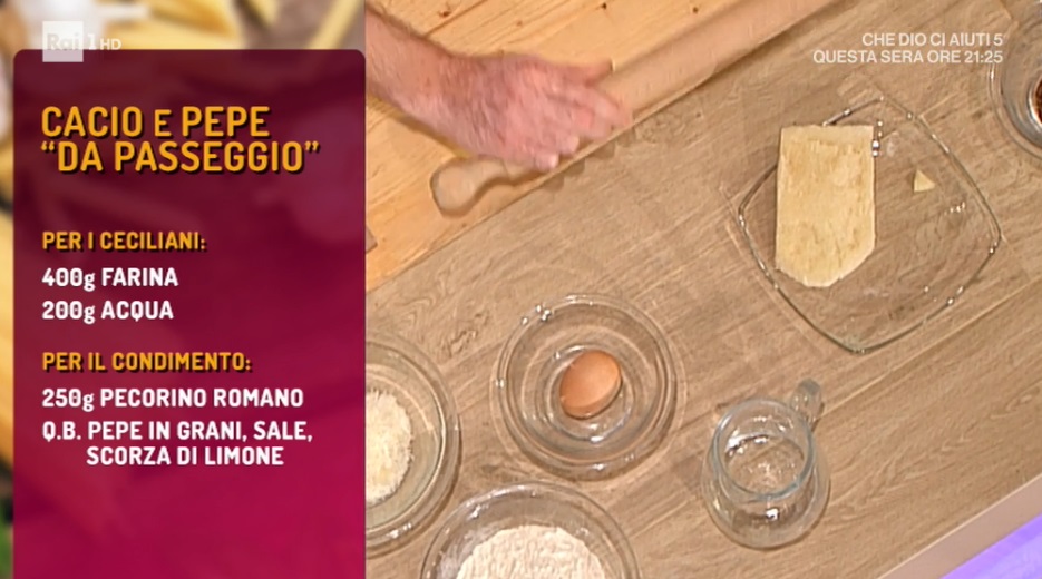 - Condimento: 300 g pecorino romano, sale, pepe