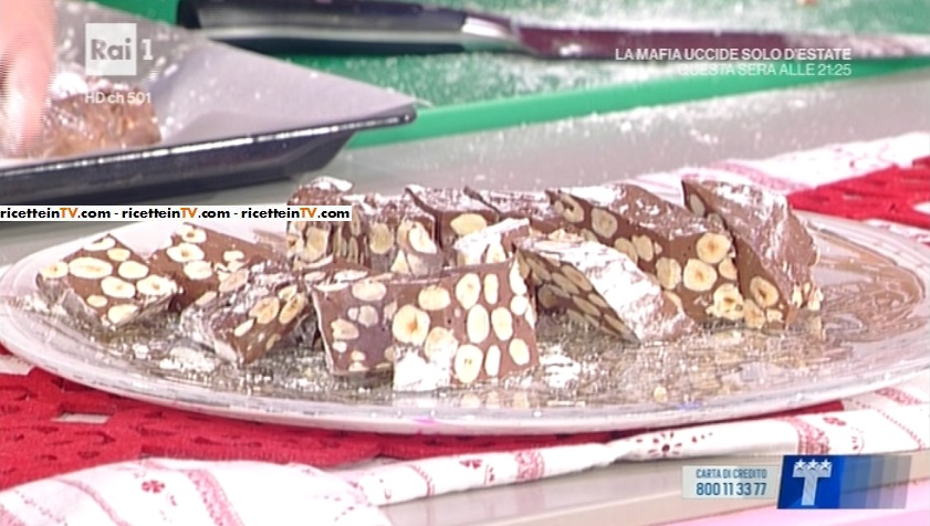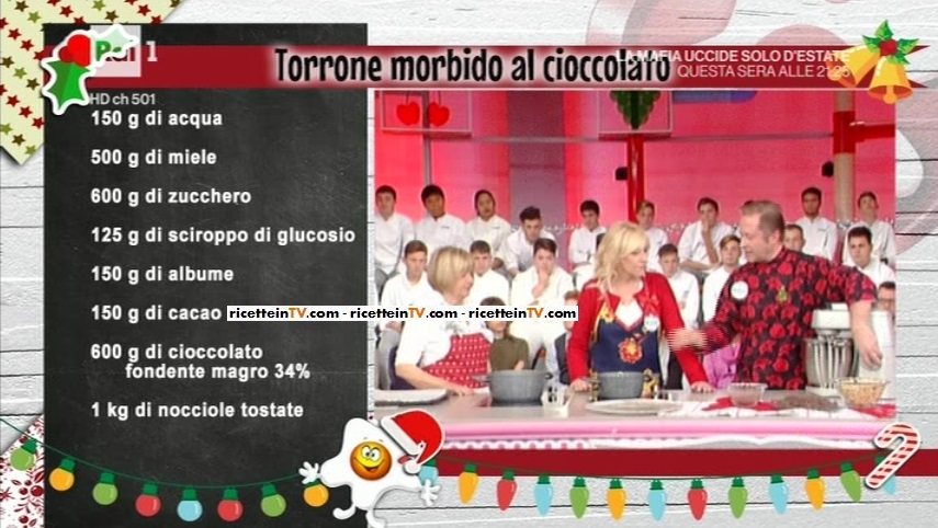 Infine, il dolce! Finalmente il dolce! A prepararlo, oggi, è il simpaticissimo Daniele Persegani, che il 6 dicembre ha perso la mamma. Antonella lo abbraccia e lo facciamo anche noi! Torniamo alla cucina, con la ricetta del torrone morbido al cioccolato.