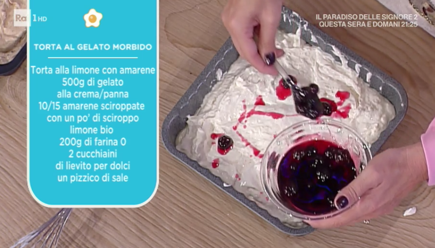 - Torta al limone e amarene: 500 g gelato alla crema o panna, 10-15 amarene sciroppate, limone, 200 g farina 0, 2 cucchiaini di lievito per dolci, un pizzico di sale