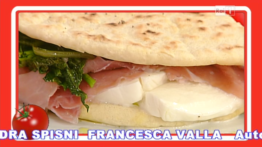 La ricetta della torta al testo con erbe amare, crudo e mozzarella di Riccardo Facchini del 18 novembre 2013 – La prova del cuoco
