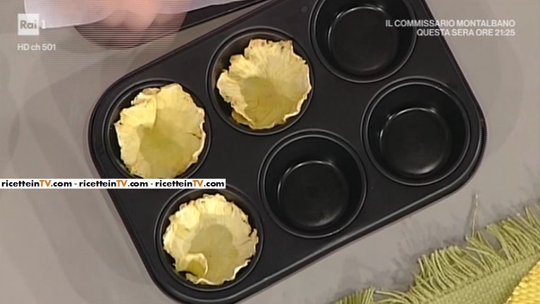 Disponiamo le fettine di ananas su una teglia coperta di carta forno e spolveriamo con zucchero a velo. Inforniamo a 90-100° per 2 ore, forno ventilato. Appena sfornate, le mettiamo all’interno degli stampini da muffin e li facciamo raffreddare lì. Prenderanno la forma di fiori.