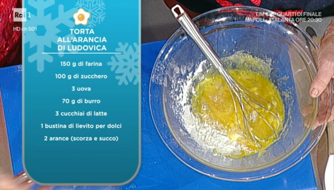Annina Moroni inaugura il 2018 con un bel dolce. Una torta che le ha preparato una signora di Tarquinia, Ludovica, che è andata a trovare prima delle feste. Talmente buona che ha subito voluto la ricetta… ed ora ce la prepara! Facciamo la  torta all’arancia di Ludovica.