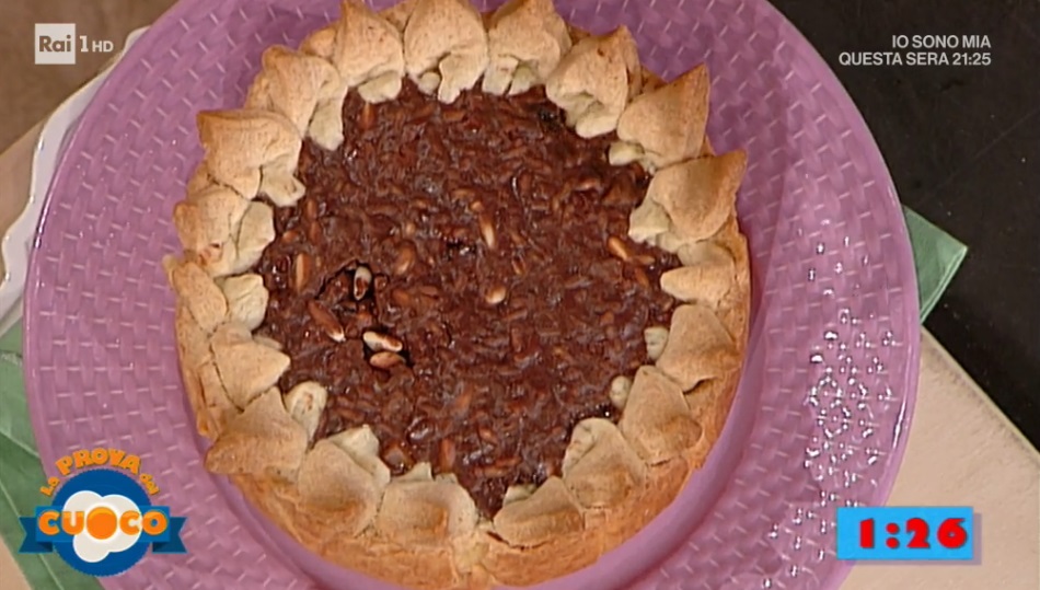 Foderiamo una tortiera con la frolla. Sui bordi, formiamo una corona di triangolini di frolla (i bischeri). Versiamo all’interno il ripieno di riso ed inforniamo a 170° per 1 ora. La base dev’essere dorata.
