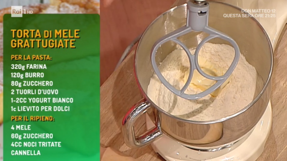 - Ripieno: 4 mele, 60 g zucchero, 4 cucchiai di noci tritate, cannella