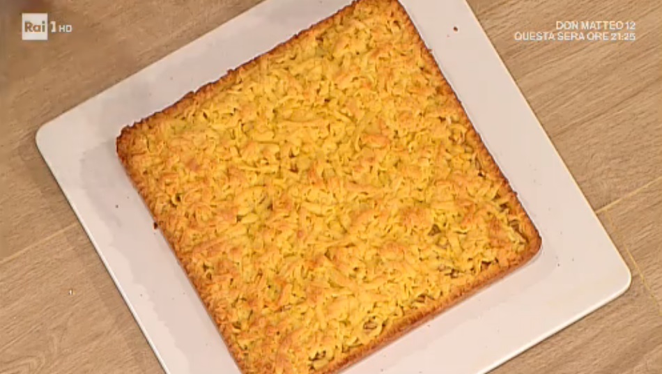 Stendiamo il panetto più grande con il mattarello e lo posizioniamo all’interno di una tortiera del diametro di 24 cm ben imburrata. Distribuiamo sulla base di frolla le noci in granella.