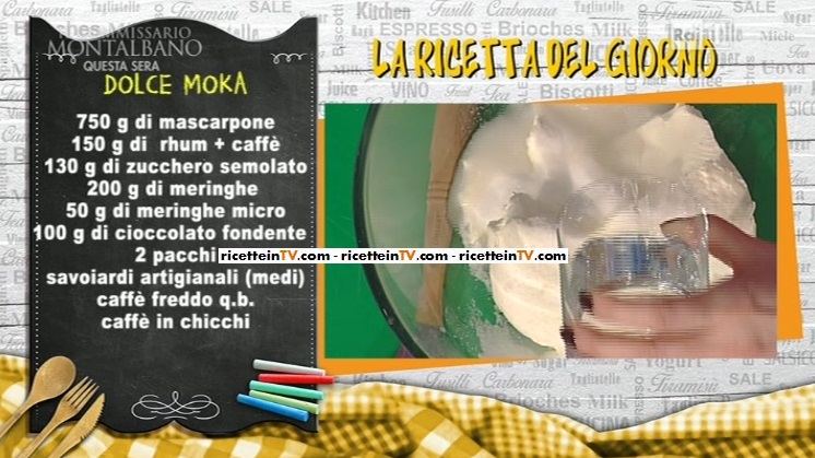 Prendiamo l’anello di una tortiera a cerniera; priviamo i savoiardi del ‘culetto’ e li disponiamo, ancora secchi, lungo l’anello. Lavoriamo il mascarpone con lo zucchero e 1/4 del rum previsto dalla ricetta. Aggiungiamo le gocce di cioccolato o cioccolato fondente grattugiato grossolanamente. In una ciotola, misceliamo caffè espresso ed il rum rimanente; inzuppiamo in questa miscela altri savoiardi che disponiamo alla base dell’anello. Formiamo uno strato di crema al mascarpone sulla base di savoiardi; sbricioliamo sopra delle meringhe grosse; formiamo un altro strato di savoiardi imbevuti, ancora crema al mascarpone, meringhe sbriciolate, savoiardi imbevuti e completiamo con la crema al mascarpone rimanente. Decoriamo con meringhette, chicchi di caffè e cioccolato grattugiato. Conserviamo in frigorifero, coperto dalla pellicola.