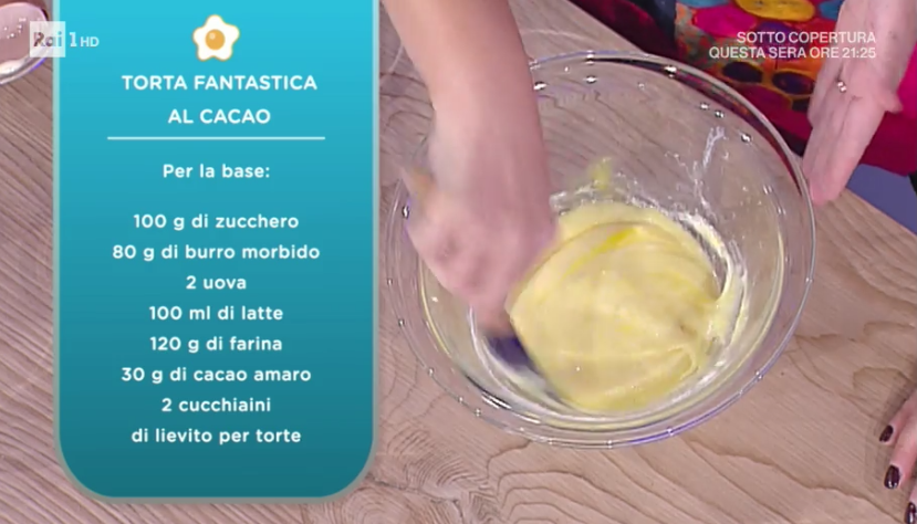 - Per la base: 100 g zucchero, 80 g burro morbido, 2 uova, 100 ml latte, 120 g farina, 30 g cacao amaro, 2 cucchiaini di lievito.