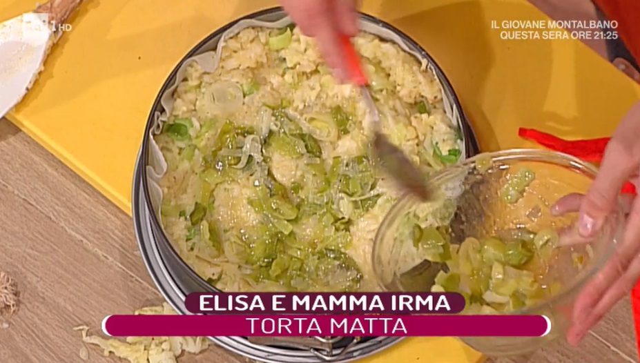 torta matta di Elisa IsoardiAnche oggi, Elisa cucina. Dopo aver assistito all’ennesimo incensamento ad opera di Claudio Lippi, la conduttrice si appresta a cucinare sotto l’occhio critico della madre, in collegamento dal Piemonte. Dunque, tra una chiacchiera e l’altra, cuciniamo la torta matta, un piatto povero tipico del paese d’origine di Elisa.