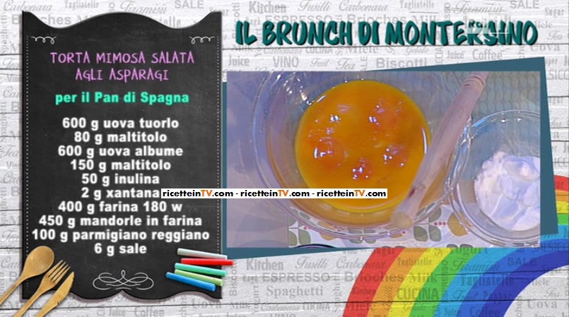 Ed eccoci allo spazio autogestito da Luca Montersino, che per il brunch, ovvero la colazione rinforzata, che funge anche da pranzo, prepara una delle sue creazioni di pasticceria salata, la torta mimosa salata agli asparagi.