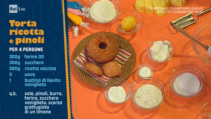 “La prova del cuoco”: torta ricotta e pinoli di Alessandra Spisni
