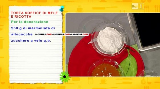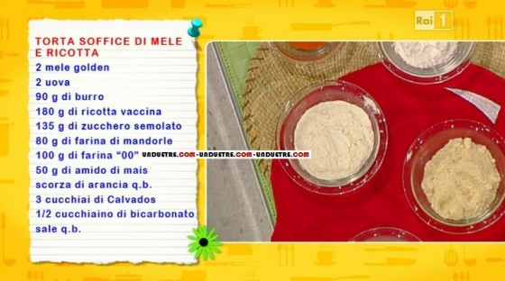 Vi proponiamo una gustosa ricetta realizzata in una delle ultime edizioni de La prova del cuoco. ‘L’appetito vien mangiando‘ introduce Sergio Barzetti, il maestro di cucina di oggi, che propone una deliziosa torta soffice di mele e ricotta.