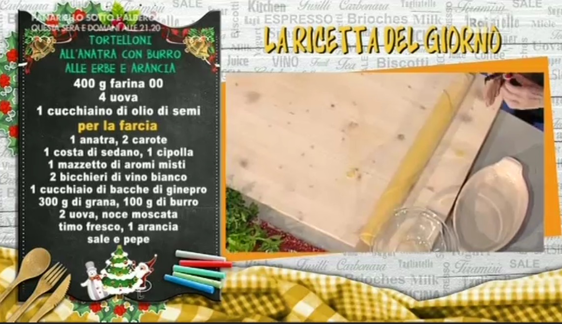 A proporre la ricetta del giorno stavolta è il bolognese Daniele Persegani, che stavolta realizza un primo piatto, i tortelloni all’anatra con burro alle erbe e arancia.