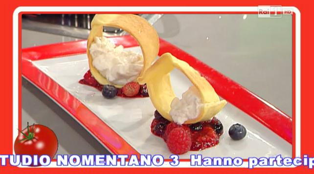 Intanto, tagliamo la pasta brisée in modo da ricavare 4 nastri. Li avvolgiamo attorno a dei coppa pasta in alluminio e li cuociamo in forno a 180° per 10 minuti. Una volta pronti, li facciamo raffreddare e li sformiamo. Intanto, lavoriamo la ricotta con lo zucchero a velo e la buccia grattugiata del limone. Meglio se la passiamo al setaccio. Uniamo alla crema di ricotta le mandorle a scaglie.