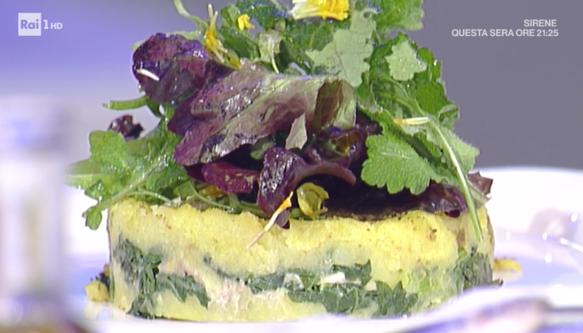 Mettiamo alla base di una pirofila o un anello tondo metà della purea di patate. Disponiamo sopra le alici deliscate crude, i broccoletti saltati e copriamo con l’altra metà di purea di patate. Inforniamo a 180° per 10 minuti. Serviamo con la misticanza ben condita. Finiamo con gocce di salsa verde, ottenuta frullando gli ingredienti sopra indicati.