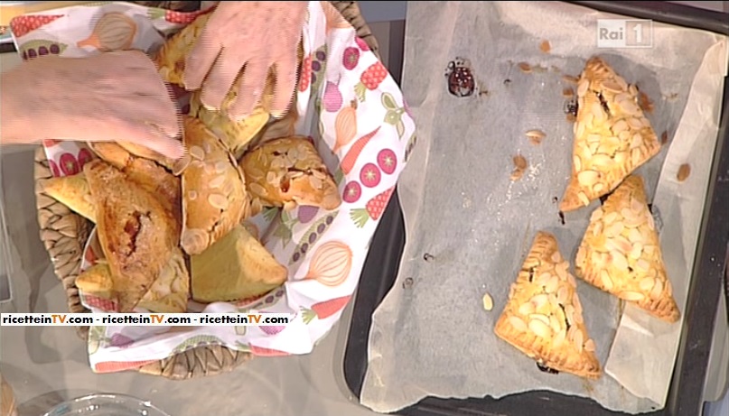 Per i triangoli, in una ciotola, mettiamo le carote tritate e ben strizzate; uniamo il burro morbido, lo zucchero a velo e l’uovo intero. Impastiamo per bene, quindi uniamo la farina con il lievito e completiamo l’impasto, aggiungendo del latte se serve. Ottenuto un composto omogeneo e compatto, lo lasciamo riposare in frigorifero per mezz’ora, coperto. Stendiamo l’impasto e ricaviamo dei quadratoni; mettiamo al centro un cucchiaino di composta e ripieghiamo, in modo da ottenere dei triangolini; sigilliamo bene i bordi, aiutandoci con una forchetta; spennelliamo con un po’ di rosso d’uovo sbattuto con del latte; spolveriamo con zucchero semolato e scaglie di mandorle. Inforniamo a 180 per circa 25 minuti, fino a doratura.