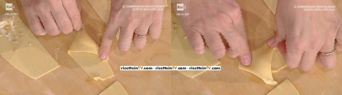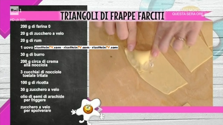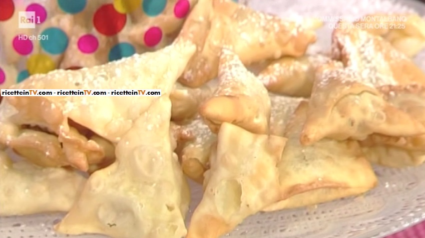 Infine, il momento più atteso della settimana, quello dedicato al dolce preparato da Natalia Cattelani. La talentuosa cuoca di propone un altro dei suoi dolci casalinghi, ma di grande effetto. Oggi, immancabilmente, un dolcetto di carnevale. Prepariamo le triangoli di frappe farciti.