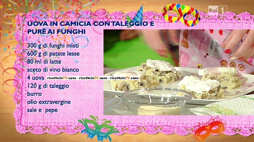 La ricetta delle uova in camicia con taleggio e purè di funghi di Antonella Clerici del 13 febbraio 2015 – La prova del cuoco