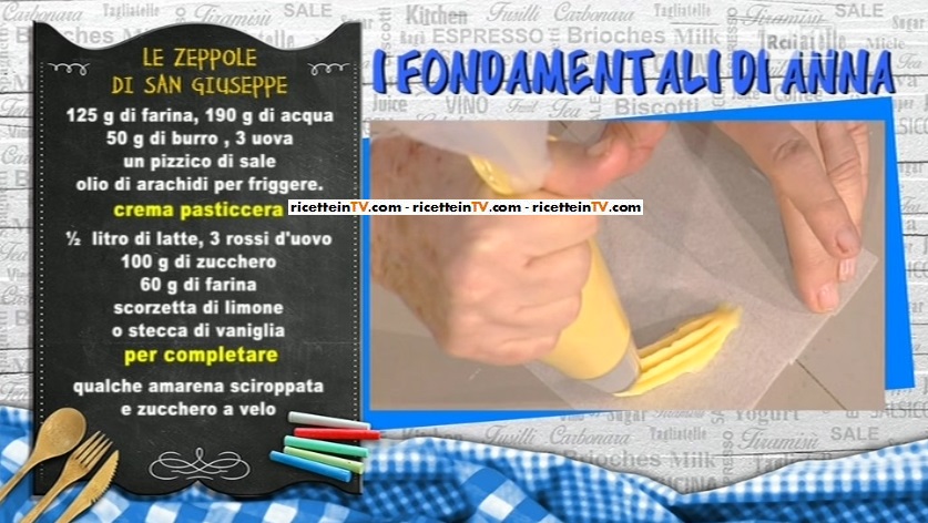 - Per i bignè: 125 g farina 00, 190 g acqua, 50 g burro, 3 uova, un pizzico di sale, olio di arachidi per friggere