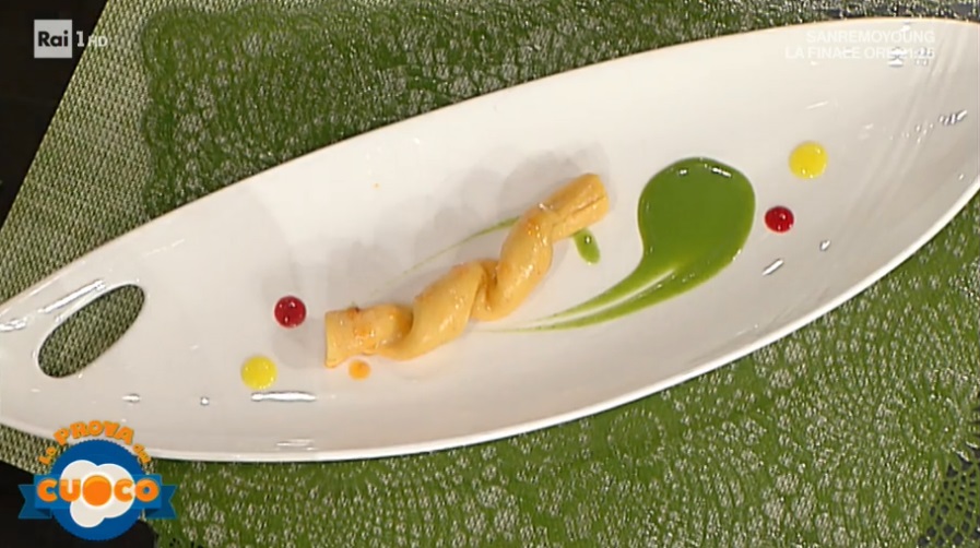 Per la salsa di strigoli, lessiamo per pochi istanti quest’ultimi in acqua. Li scoliamo, li raffreddiamo in acqua e ghiaccio e li frulliamo insieme ad una patata lessa.